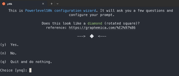 폰트까지 적용하고 터미널을 재실행했다면, 이제 Powerlevel10k 설정 마법사가 자동으로 시작될 것입니다. 만약 자동으로 시작되지 않는다면, 터미널에서 다음 명령어를 실행해 주세요.